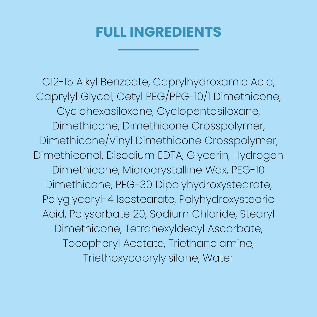 - Dimethicone & Silicones – Smooths skin texture while preventing moisture loss.
